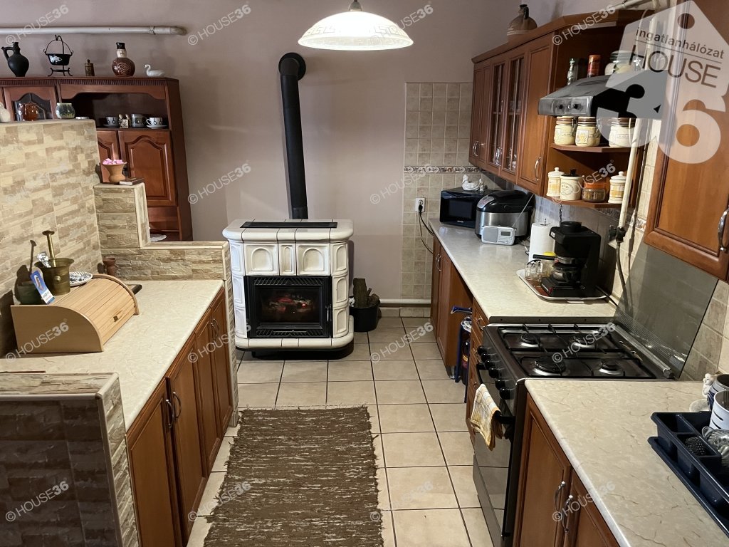 Fűtés: új gázkazán, vegyes tüzelésű kazán, cserépkályha. Fa nyílászárók, járólap, laminált padló, parketta. Garázs, melléképületek, kerti kiülő, nagy kert gyümölcsfákkal. Vállalkozásra is alkalmas, üzlethelyiségek kialakíthatók, nagy családoknak is ideális.