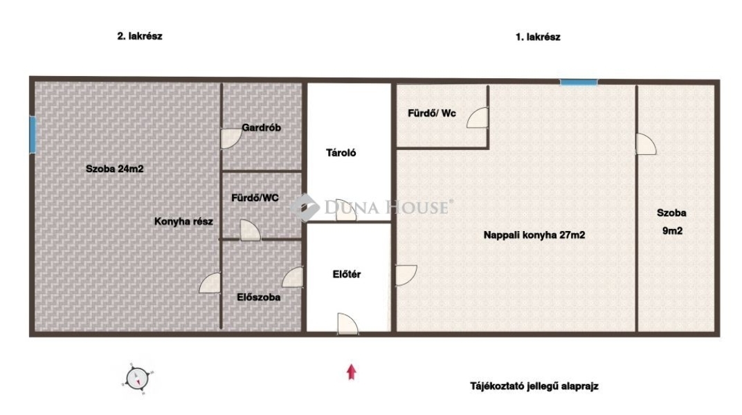 A helyiség két különálló részre tagolódik, amelyeket egy átjáró köt össze. Mindkét egységben rendelkezésre áll vizes blokk, ami lehetővé teszi akár két külön lakrész, iroda, stúdió vagy egyéb üzleti funkció kialakítását is. A 2,5 ( néhol csak 2 m) méteres belmagasság jól kihasználható tereket biztosít, a masszív téglaépület pedig stabil alapot ad a felújításhoz.