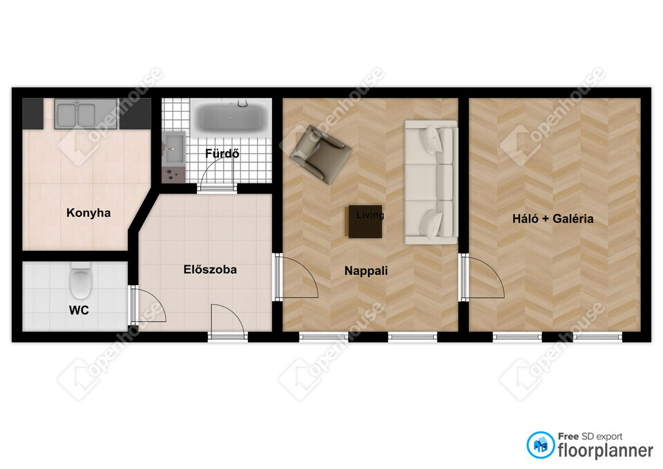 Az elosztása jól alakítható, kényelmes nappali + hálószoba kialakításra tökéletes alap.
