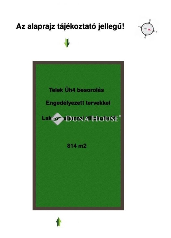 A terület 814 m2, melyhez a közművek az telekhatárnál találhatóak.
