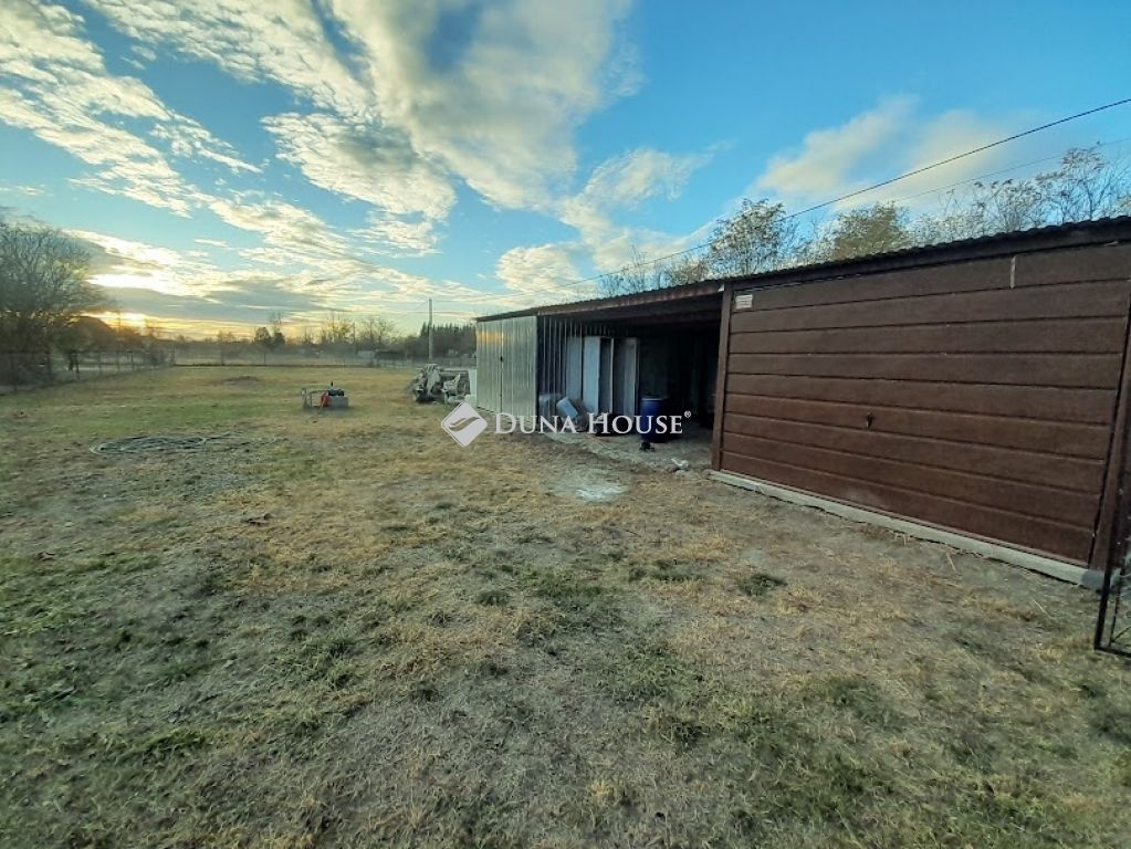 A telken felépítettek két beton aljzaton álló lemezszerkezetes garázst darabonként 6 X 3,5 m melyeket egy 4 X 6 m-es fedett tároló köt össze.