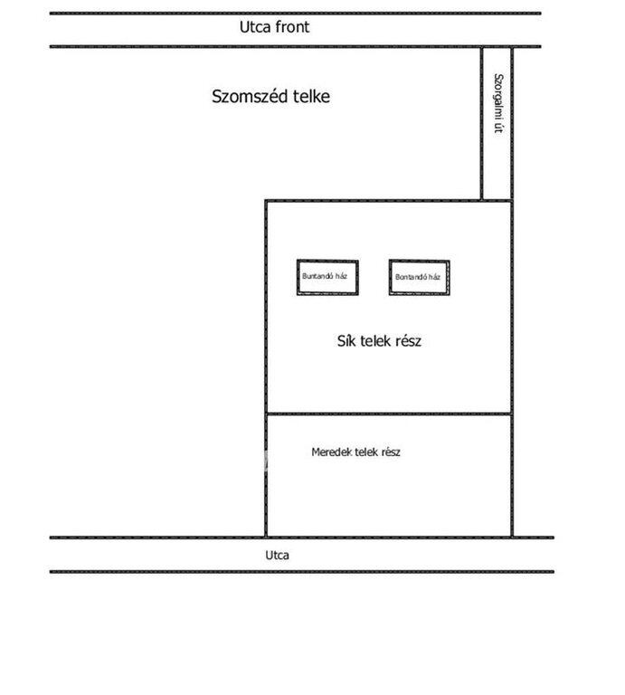 A telek szolgalmi úton keresztül közelíthető meg.