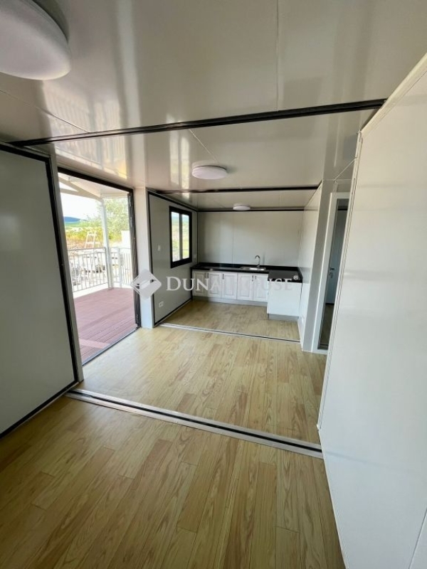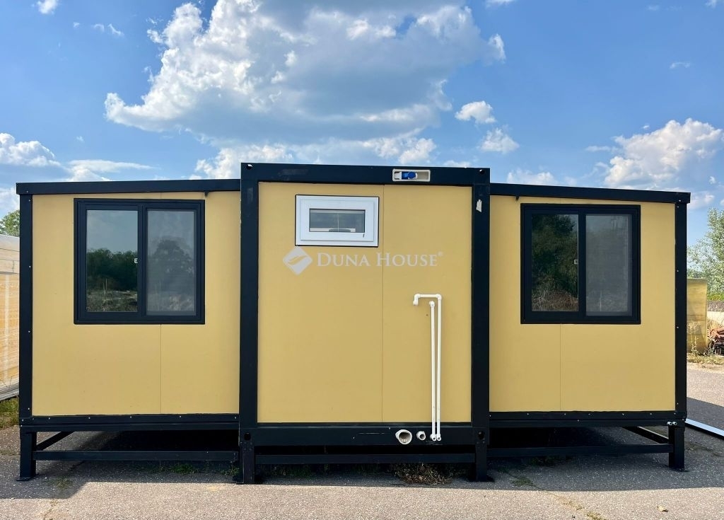 A hirdetés a mobilházakra vonatkozik, a telek nem képezi az eladás részét. A hirdetési rendszerben technikai okok miatt csak így lehetett feltölteni az ingatlant.Főbb jellemzők 34,7 m² hasznos alapterület Okos elrendezés, amely alkalmas nappali + hálószoba vagy iroda + munkaterület kialakítására. Nagy fedett terasz Masszív acélvázas veranda, korláttal tökéletes kültéri étkezéshez, pihenéshez vagy nyaralásra. Modern ablakok és szigetelés Több hőszigetelt tolóablak biztosítja a jó világítást, szellőzést és energiahatékonyságot. Vízvezeték- és közműszerelési előkészítés - A vízbekötés, a szennyvízelvezetés és az elektromos hálózat már rendelkezésre áll a helyszíni gyors bekötés érdekében. Megerősített acél talp - A megemelt kialakítás tartósságot, stabilitást és nedvesség elleni védelmet biztosít. Méretek: Alapterület 36,3 m2 (szélesség 6,21 m x hosszúság 5,85 m) Belső/hasznos terület 34,7 m2 (szélesség 6,11 m x hosszúság 5,69 m) Összecsukva szállítható állapotban: szélesség 2,25 m x hosszúság 5,85 m x magasság 2,51 m Terasz 15,5 m2 (6,2 m x 2,5 m - dekoratív WPC padlóval)- Konyhabútor, fürdőszoba az árban- 2 szoba, nappali, konyha, fürdőszoba5 cm-és szendvics panelből vannak a falak, a tető szigetelt.A mobilház Egerben megtekinthető. Szállítását a vásárlástól számítva akár egy héten belül is meg tudjuk oldani.