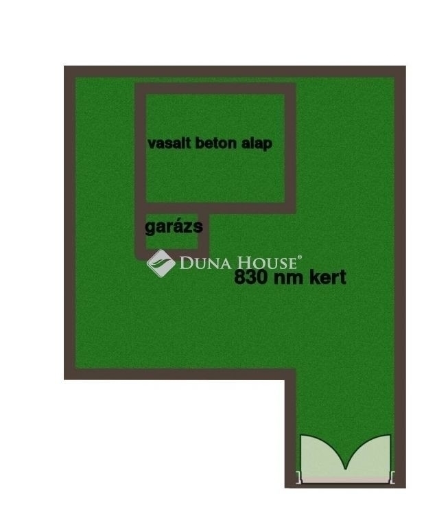 A telken található egy kétállásos garázs, valamint egy 12 × 14 méteres beton alap, amely egy korábban tervezett lakóház építéséhez készült.