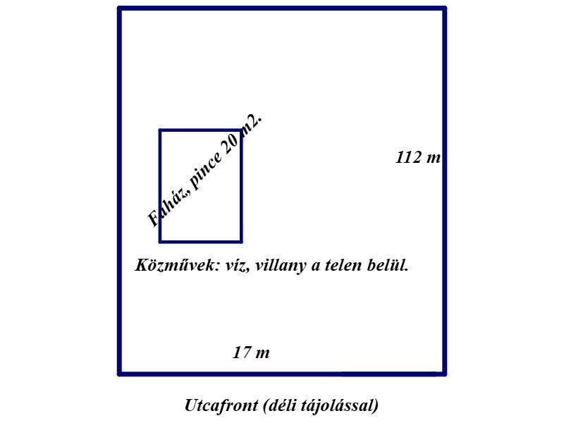 A telek aszfaltozott utcában, családi házas övezetben található, 17 méteres utcafronttal és 112 méteres mélységgel.