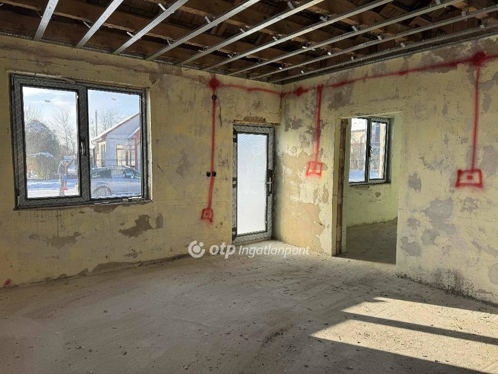 Az 59 négyzetméteres ház szinte készen van, de mivel nem lett még befejezve a folyamat TELEKKÉNT értékesítendő, illetve a tulajdoni lapon is így jelenik meg.