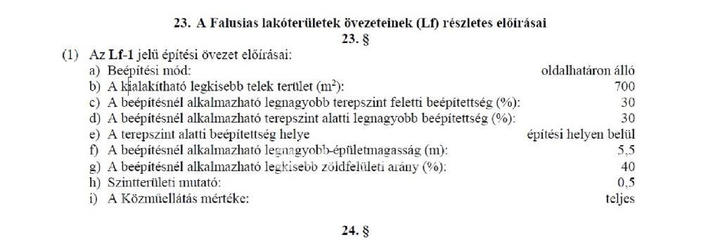 - Övezeti besorolás: Falusias lakóövezet (LF-1)