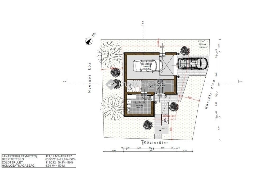 Az épület 25 cm Ytong főfalazattal, korszerű hőszigeteléssel és 12 kW-os hőszivattyús padlófűtéssel készül, alacsony rezsiköltséggel.