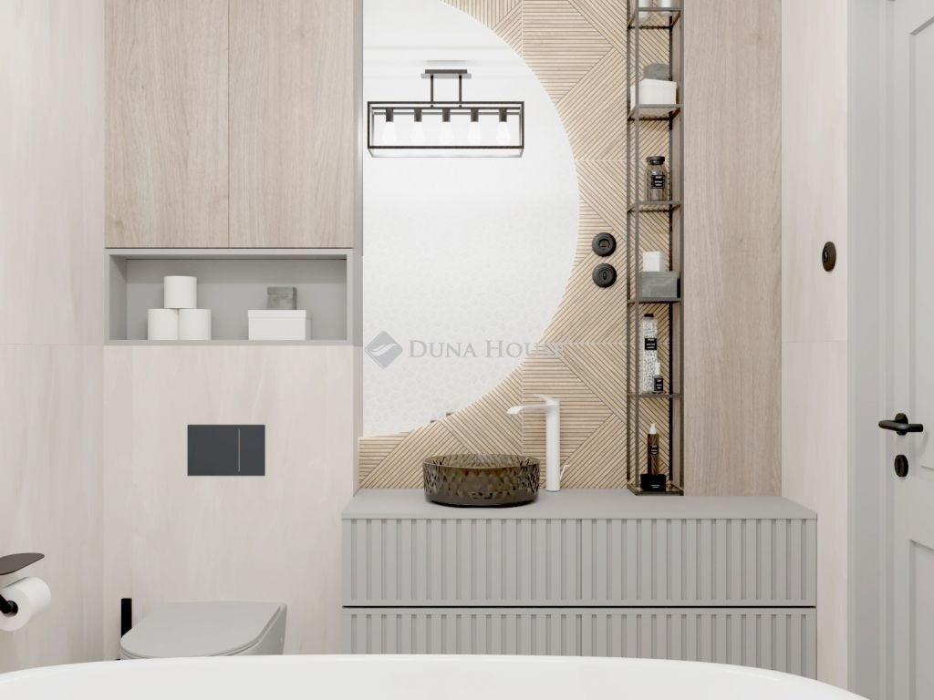 Fonyód Fő utcáján, a Balatontól 1200 méterre, 4 db, magas műszaki színvonalú, 92-96 m2-es sorházi lakás kerül kialakításra, saját kerttel.A lakások 2026 év III. negyedévtől lesznek költözhetőek. 2026 januárjában 50%-os készültségi fokon vannak. Földszinten előszoba, 1 szoba, fürdő+wc, és nagy, 31m2-es konyha-étkező-nappali helyiségek találhatók.A nappaliból induló lépcsőn keresztül jutunk a tetőtérbe, ott 2 szoba, fürdő és wc, továbbá háztartási helyiségek találhatók.A nappali nagy méretű nyílászáróval kapcsolódik a külső teraszhoz és kerthez. Fűtés-hűtés és melegvíz ellátásról a lakásonként beépített hőszivattyúk gondoskodnak, helyiségenként szabályozható a padlófűtés és a mennyezethűtés.Felső kategóriás, panorámás-motoros redőnnyel szerelt nyílászárókkal, és külső 15 cm-es grafitos szigeteléssel alakították ki a lakásokat.Riasztó és napelemes rendszerek építését a lakásokban előkészítették. Minden lakáshoz saját, déli fekvésű, kerítéssel ellátott kert is tartozik, valamint lakásonként 1 db felszíni kocsibeálló is. A kocsibeállók elektromos autótöltő előkészítéssel rendelkeznek.Plusz autóbeálló is vásárolható.Ha felkeltette az érdeklődését, kérem, hogy keressen!