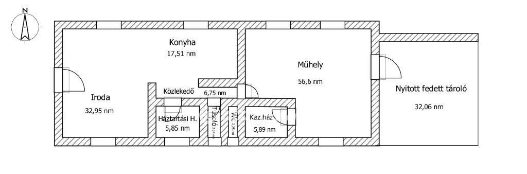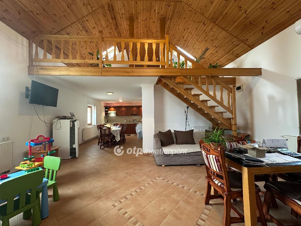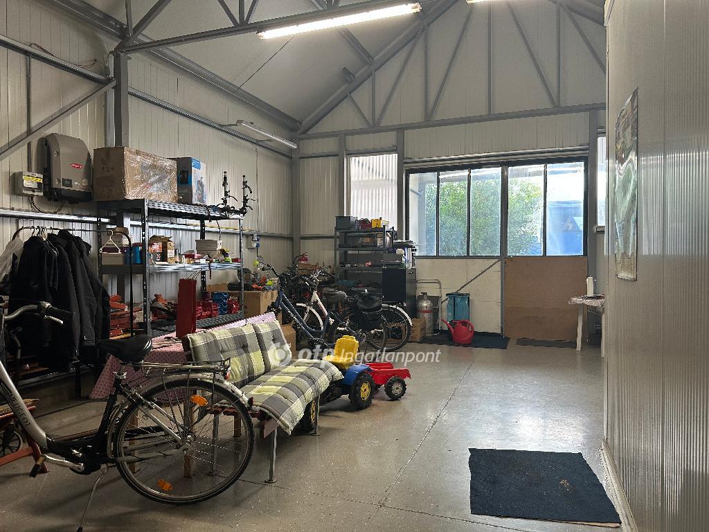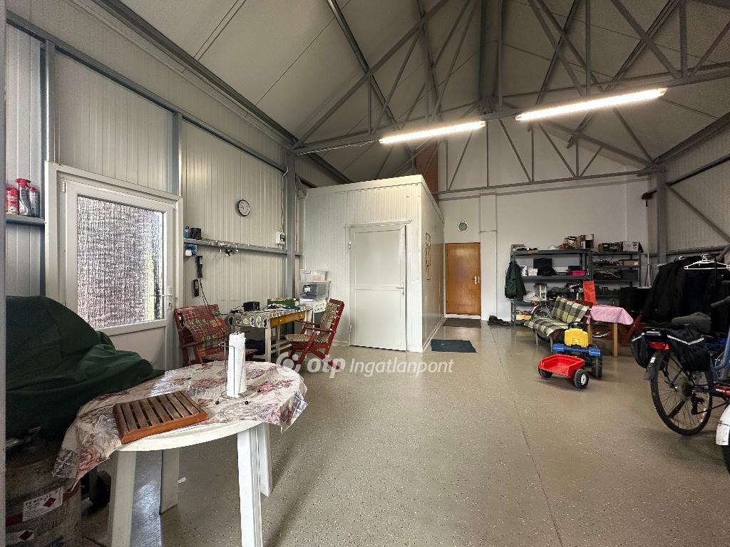 A fő épület 129 nm. Modern, jól karbantartott. Megtalálható benne iroda, konyha, tusoló, WC, háztartási helység, közlekedő, galéria. A fő épületből közvetlenül nyílik egy 56 nm-es műhely, kazánházzal és egy 32 nm-es nyitott, fedett tároló. Az épület tetején napelemes rendszer működik, amely jelentősen csökkenti a rezsiköltségeket. A telken önálló, 110 nm-es, nagy belmagasságú szerelőcsarnok található, ami külön bejárattal rendelkezik. Ideális nagyobb teherautók, buszok, kamionok fogadására és szerelésére.