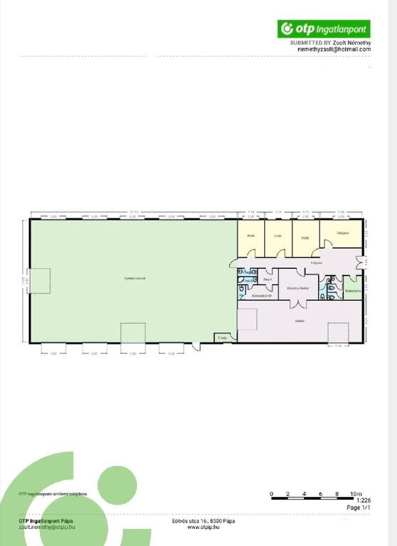 ELADÓ KIVÁLÓ ÁLLAPOTÚ IPARI TELEPHELY PÁPÁN ! MODERN IRODA ÉS GYÁRTÓCSARNOK, KIVÁLÓ INFRASTRUKTÚRÁVAL! Helyszín: 8500 Pápa, Ipari park. - Modern iroda és gyártócsarnok - Kiváló infrastruktúrával rendelkező ipari környezet - Ideális gyártási, logisztikai vagy raktározási célokra Az ingatlan Pápa ipari és kereskedelmi övezetében, könnyen megközelíthető helyen található, ideális választás vállalkozások számára, akár kamionos közlekedéshez is. A környék kiemelkedő infrastruktúrával rendelkezik, így a helyi és regionális vállalkozások számára is tökéletes elhelyezkedést biztosít. ________________________________________ INGATLAN ADATAI - Ingatlan típusa: Ipari és kereskedelmi telephely - Telek területe: 4.700 m2 - Építés éve: 2021 - Összes nettó burkolt terület: 609 m2 - Jelenlegi hasznosítás: Iroda és gyártócsarnok ________________________________________ AZ ÉPÜLET JELLEMZŐI Felépítmény: - Modern, acélváz szerkezetű, hőszigetelt csarnok - Korszerű Kingspan burkolattal ellátva - Kettős nyeregtetős kialakítás - Összesített hasznos alapterület: 609 m2 - Iroda és szociális blokk területe: 109 m2 - Műhely/üzemcsarnok területe: 493 m2 - Műgyanta borítású ipari padló a csarnokban Iroda és szociális helyiségek: - Recepció - 3 különálló irodahelyiség - Teakonyha és étkező - Tárgyaló - Női és férfi öltözők, mosdók, zuhanyzók, WC-k Fűtési és hűtési rendszer: - 2 db levegő-víz hőszivattyús központi rendszer - Padlófűtés és radiátoros fűtés kombinációja - Fan-coil hőleadók - Részleges klimatizálás Közművek és technológiai ellátottság: - 220/380V elektromos hálózat - Hálózatos víz- és szennyvízvezeték - Geotermikus fűtési rendszer - Kiépített biztonságtechnikai rendszer Övezeti besorolás: GKSZ-4 (gazdasági-szolgáltató övezet) - Beépíthetőség: 45% - Zöldterület minimális aránya: 25% - Maximális építménymagasság: 14 m ________________________________________ LOKÁCIÓ ÉS MEGKÖZELÍTHETŐSÉG - A telephely Pápa gazdasági övezetében helyezkedik el, közvetlenül a Külső Veszprémi út és az elkerülő utak közelében. - A helyi buszmegálló mindössze 400 méterre, autóbusz-pályaudvar és vasútállomás 1.5-2 km-re található. - A 83-as főút és az országos úthálózat gyorsan elérhető, lehetőséget biztosítva a gyors közlekedésre. - Kamionos közlekedésre is alkalmas, parkolási lehetőség biztosított az épület előtti területen. ________________________________________ HASZNOSÍTÁSI LEHETŐSÉGEK Ez a modern, kiváló állapotú telephely ideális választás: - Gyártóüzemek, ipari termelőegységek számára - Logisztikai központok, raktárak kialakítására - Innovatív ipari beruházásokhoz - Vállalkozások számára, akik új, modern telephelyet keresnek A rugalmas kialakítás lehetővé teszi az ingatlan bővítését és további testreszabását az új tulajdonos igényei szerint! Ne hagyja ki ezt a kiváló lehetőséget, és lépjen kapcsolatba velünk még ma!