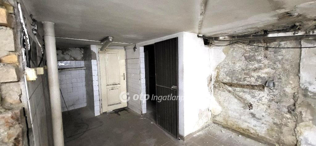 A felső - 15 nm - közvetlenül az utcáról közelíthető meg, ebből nyílik a raktár - 108 nm -, amely 14 lépcsővel lejjebb található. A közművek a gáz kivételével benn vannak.