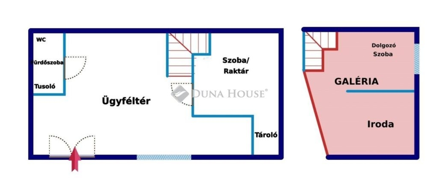 13.kerületben eladó egy 51 m2-es+18 m2-es álló galériával rendelkező, UTCAI BEJÁRATOS, napfényes üzlethelyiség.Az üzlethelyiségbe belépve egy tágas tér van, ami ideális ügyféltérnek, vendégtérnek. A galéria alatt található különálló helyiség az ügyféltérből nyílik, ami kezelőszobának, raktárnak vagy akár dolgozószobának is kitűnően alkalmas. A galéria jelenleg két részre van osztva. Akár vendégek fogadására, irodahelyiségnek, tárgyalónak is kitűnő a praktikus kialakításnak köszönhetően.A fűtést távfűtés biztosítja. A fürdőszobában tusoló van.A 13. kerület dinamikus és fejlődő területe tökéletes választás vállalkozók és befektetők számára egyaránt. A kerület gazdag kulturális életet, kiváló közlekedést és sokoldalú szolgáltatásokat kínál, így a mindennapokban és üzleti tevékenység szempontjából is előnyös választás.A közlekedés kiváló, a 3-as metró, a 105-ös busz mindössze néhány perc alatt elérhető, így az üzlethelyiség könnyen megközelíthető bárhonnan. A közelben található a Váci út, Duna Plaza, Angyalföldi Sportközpont, Vasas Sport Club, József Attila Művelődési Központ, valamint a Rákos-patak, számos vásárlási és szabadidős tevékenység lehetőséget kínálva.