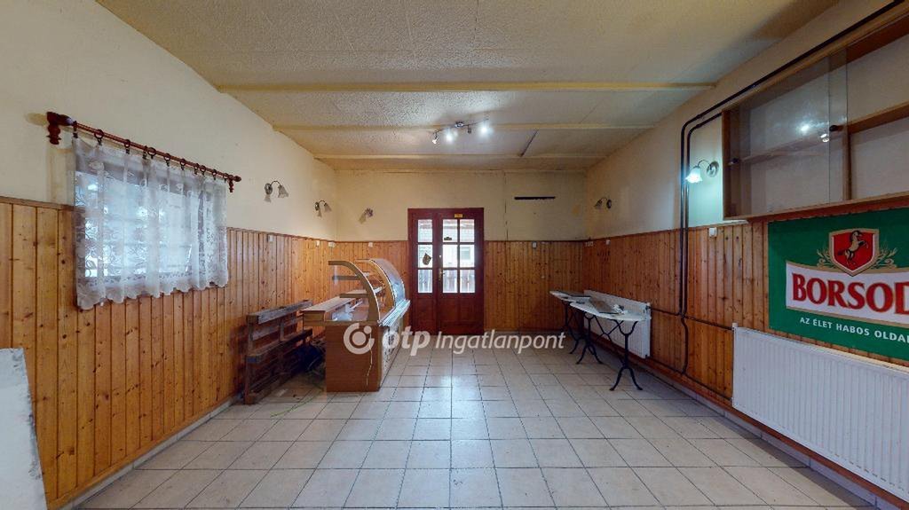 A belső tér tágas vendégtérrel rendelkezik, pulttal, kiszolgáló egységgel, csempézett padlóval és radiátoros fűtéssel. A helyiség igény szerint felújítható, modernizálható, így az új tulajdonos saját képére formálhatja.
