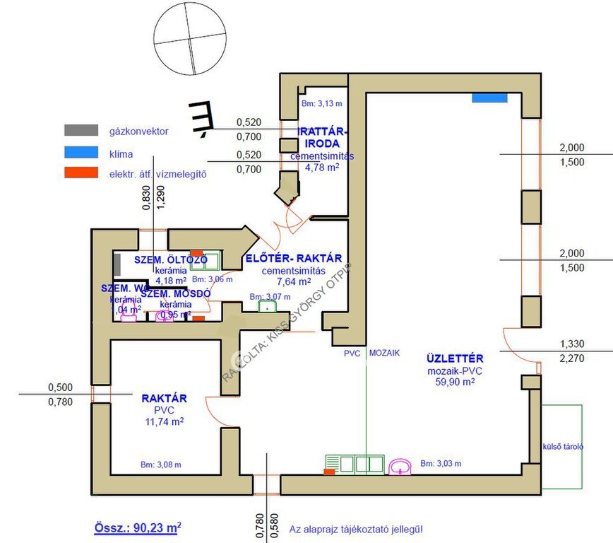 Fűtés: üzlettérben 1 db hűtő-fűtő klíma, hátsó részen gázkonvektor.