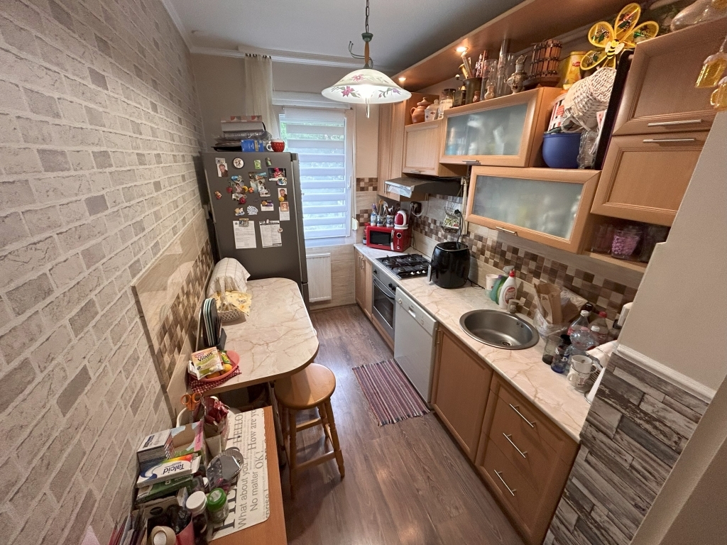 Műanyag nyílászárók lettek beépítve, beleértve a biztonságos műanyag bejárati ajtót is. Az erkély 3 m²-es, ideális reggeli kávéhoz vagy növények számára. A lakás déli fekvésű, így egész nap világos és barátságos.