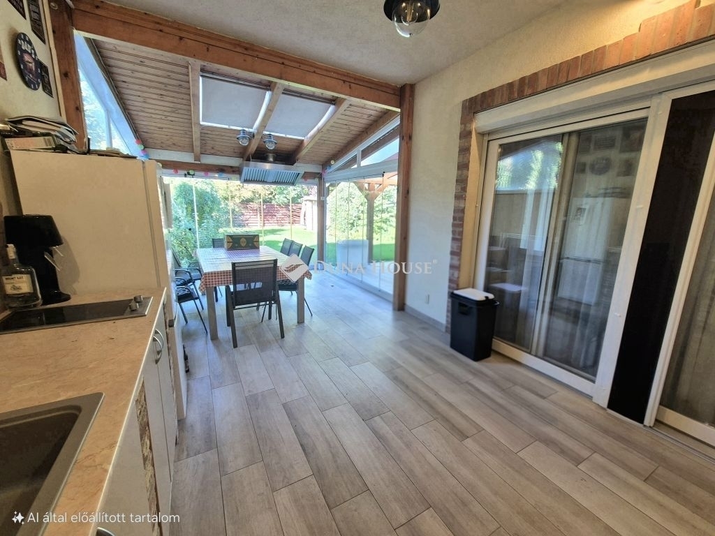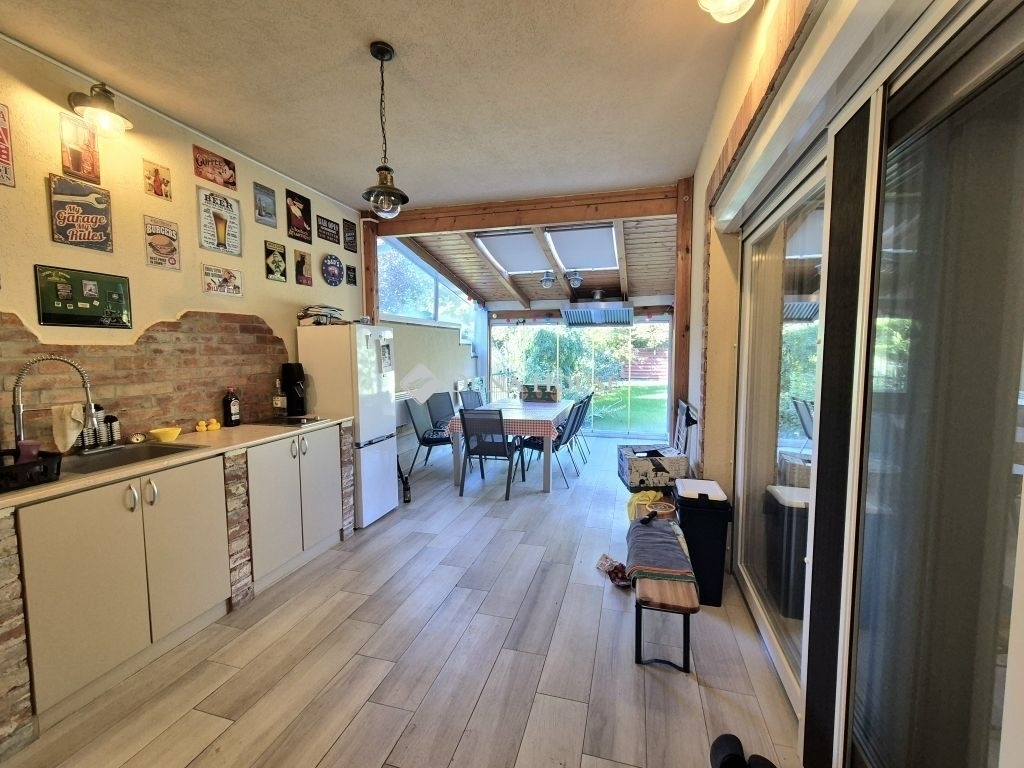 - 25 nm-es, téliesített (klímával felszerelt, fűthető) fedett terasz ,tetőablakokkal, nyitható üvegfallal, és konyhaszigettel,