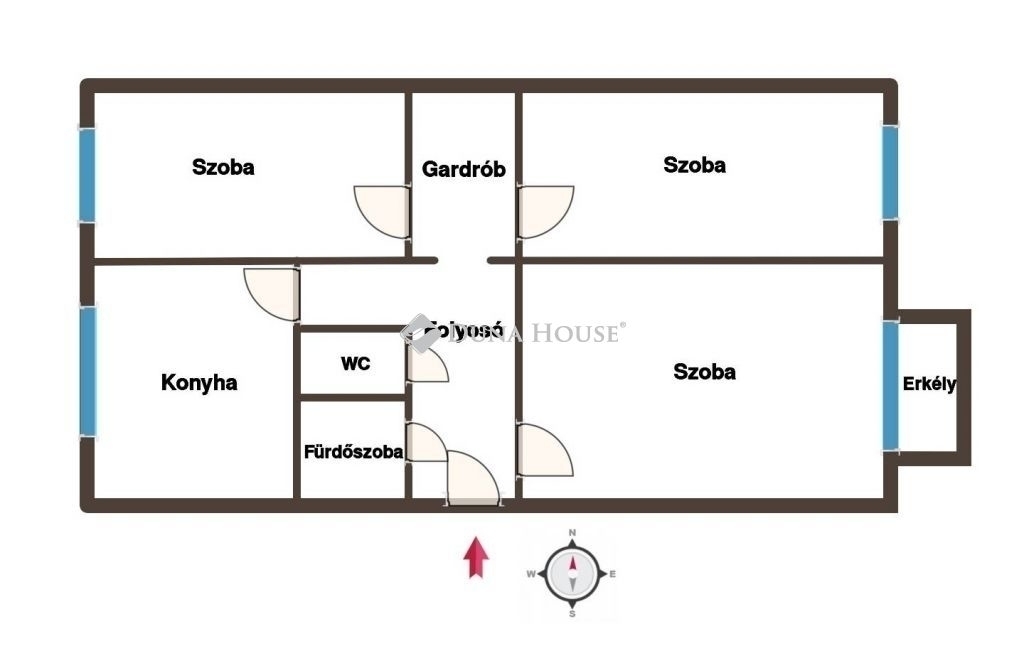 - 3 külön nyíló, jól kihasználható szoba,