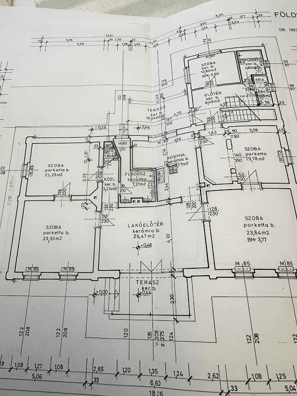 Földszint helyiségei: 5 szoba, nappali, étkező-konyha , fürdőszoba,fürdőszoba, közlekedő, előtér, 2 terasz.