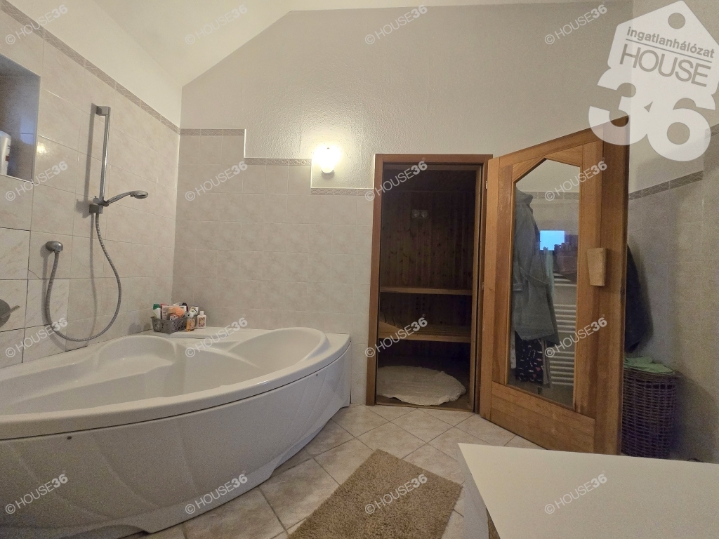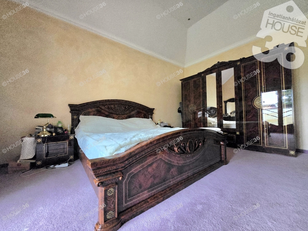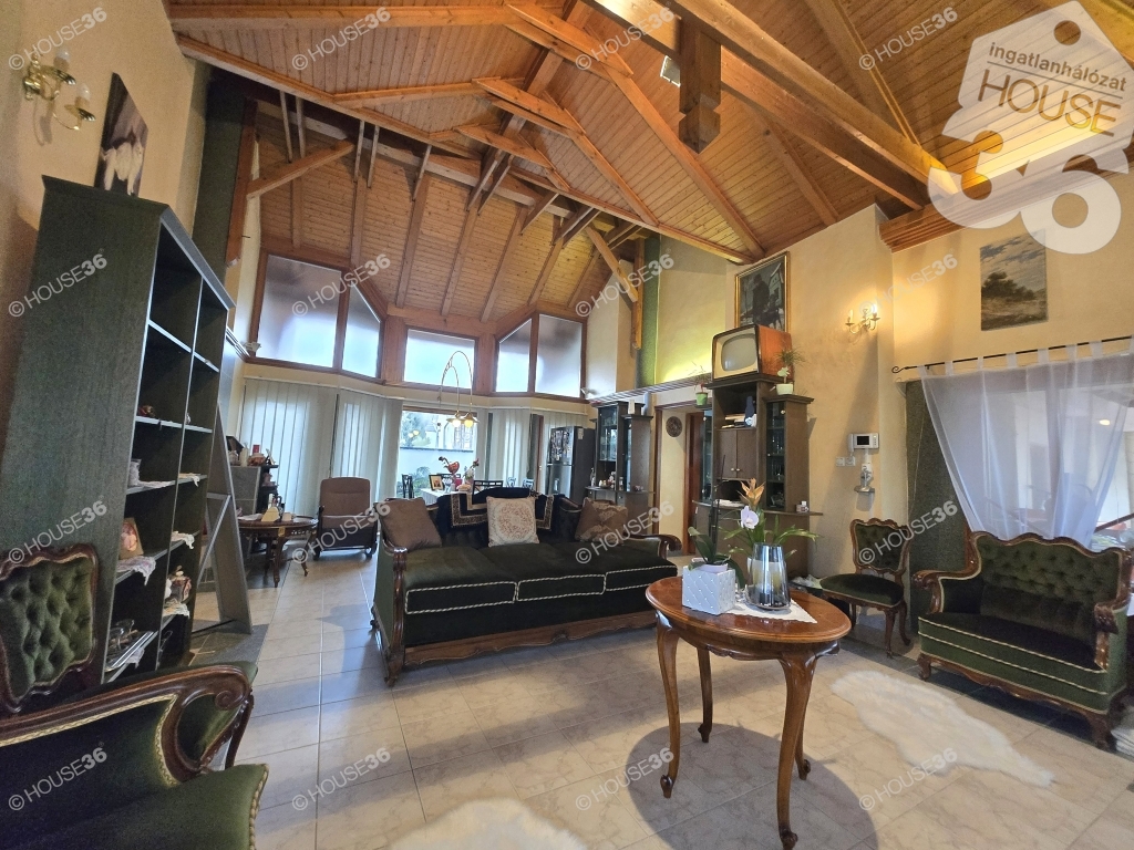 Az 1153 m2-es összközműves, aszfaltozott utcában levő területre a tulajdonos egy bruttó 280 m2-es nappali+3 szoba, konyha, két fürdő, szauna, külön wc, gardrób szobával rendelkező otthont álmodott meg. Egy hatalmas bruttó 50 m2-es nappalival, mely panorámás kilátást nyújt az egész udvar és a hátulsó télikert területére.