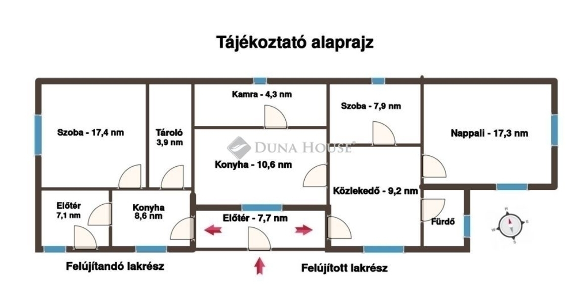 A másik házrész, mely 37 m², teljes felújításra vár, de éppen ez adja a lehetőséget: bővítheti akár két új szobával, vagy kialakíthat egy önálló lakrészt tökéletes választás kétgenerációs megoldásként, befektetésként vagy bérbeadásra.