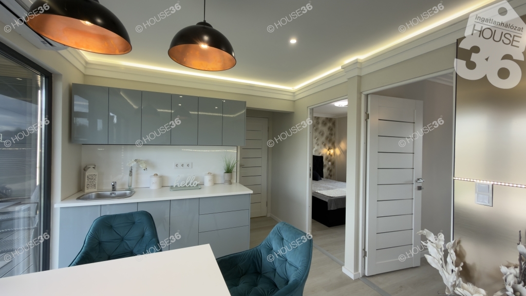 Összközműves, azonnal költözhető. A kivitelezés szép, igényes, minden részletre kiterjedő tervdokumentációval. A helyiségek klímatizáltak. Tartozik hozzá egy 14 m²-es fedett terasz is.