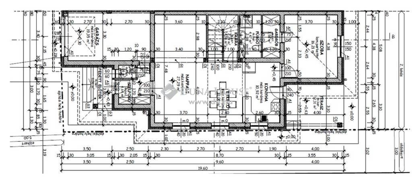 A teljes telek méret 1280 nm.A lakások földszintjén a 19 nm-es garázs mellett, 57 nm-es nappali-amerikai konyha + 1 hálószoba a hozzá tartozó gardrób és fürdőszoba kapott helyet, míg az emeleten 3 szoba 1 fürdő wc-vel és egy háztartási hekyiség is kialakításra került.
