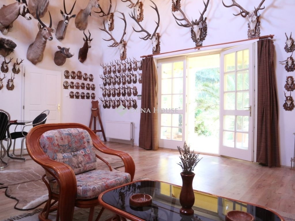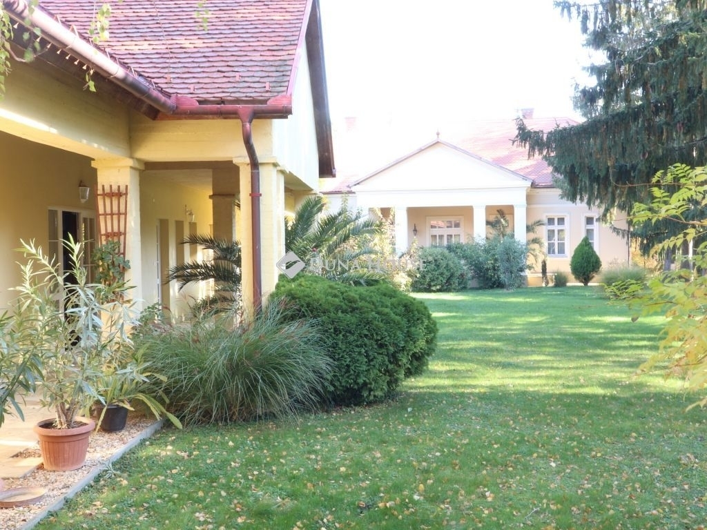 Eladóvá vált Pécsváradtól és a Dombay tótól 1 km-re lévő, 1902-ben épített Kúria! Ideális ingatlan befektetés, intim, elszeparált családi birtoknak, vagy akár üzleti célra, vendégháznak, vadászháznak, rendezvényháznak! Az épület együttes egy halastó szomszédságában, közel két hektár, 19600m2, parkosított, körbekerített területen fekszik rálátással a Zengőre, ahová egy Székely kapun keresztül érkezünk meg. A főépület br. 306 m2, Kelet-Nyugati tájolású, melyhez egy 17 és egy 26 m2-es fedett terasz kapcsolódik.A földszint tágas terekből áll össze, mely magas, nagyméretű ablakokkal határolt, belmagassága 3,65m, körbenapozott, így kellemes, világos, szellős miliőt biztosít reggeltől, estig. A nappali ideális méretű, 41m2, ahonnét a biliárd szoba, valamint a keleti terasz közelíthető meg, mely nyáron a délutáni órákban kellemes, hűs időtöltésre ad lehetőséget, kilátással az ősfás parkra. Ezen a szinten, egyebek mellett, helyet kapott még kettő hálószoba, melyekhez saját fürdő tartozik és egy 24 m2-es étkező, amihez a nyugati oldali terasz és asztalos által, egyedileg, keményfából gyártott konyhabútorral felszerelt, gépesített konyha kapcsolódik. Ennek az épületnek egyebek mellett, egyik ékessége a Zsolnay gyár által egyedileg tervezett és készített, kézzel festett majolika cserépkályha, ami biliárd helységben található.Az épület alatt egy boltíves, téglával kirakott 37m2-es boros pince, széles, 18m2 közlekedő, egy 17m2 és egy 26 m2-es, kibetonozott alagsori helyiség található, ami további lehetőségeket rejt magában, akár wellness vagy konditerem kialakítható. További bővítésre a tetőtér irányába van lehetőség, ahol több apartman vagy háló helységek is kialakíthatóak.A területen továbbá helyet kapott egy bruttó 311m2-es vendégház, ami 23m2 déli tájolású fedett teraszról közelíthető meg. Az épület közepén 35m2 nappali található, amit egy nagyon szép Zsolnai cserépkályha díszít. Innen jobbra és balra egy-egy hálószoba nyílik, saját fürdőszobával. Az épület nyugati oldalán, a terület bejárata felől, 31m2 kétállásos garázs, tárolóval, a nyugati oldalon pedig fedett, 37m2 kiülő, nyári konyhával került kialakításra, ami szükség esetén beépíthető és így további apartman nyerhető belőle.A két épület felújítása 2002-2007 között történt, mely során, mid műszakilag, mind esztétikailag teljesen megújultak. -A külső nyílászárók keményfából, betörésbiztos hőszigetelt üvegezéssel, a belső ajtók is egyedileg, tömör fából készültek. -A külső és belső hideg burkolások 1. osztályú, Süttői mészkőből készültek, a parketta pedig minőségi tölgyfából lett lerakva.-A fűtés, épületenként egy-egy gázkazánnal megoldott, melyek 5m3 földbe süllyesztett gáztartályról vannak táplálva.Jöjjön el , nézze meg, érdemes!!! További információkért hívjon a megadott számon.