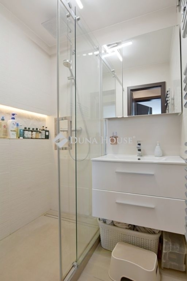 - tágas, igényesen kialakított zuhanyzós fürdőszóba, Hansgrohe csapteleppel