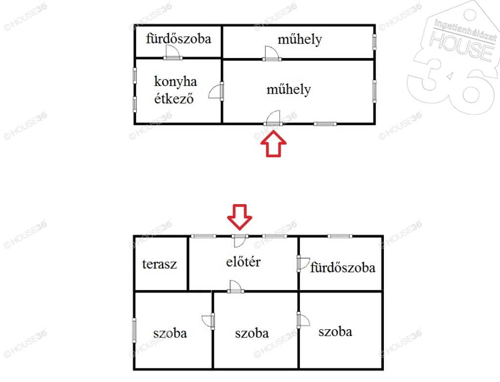 80 m2-es lakótér, 60 m2-es melléképület (műhely, konyha, fürdőszoba)