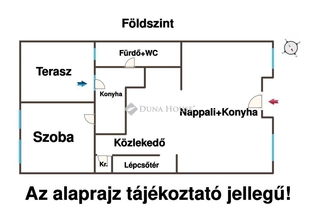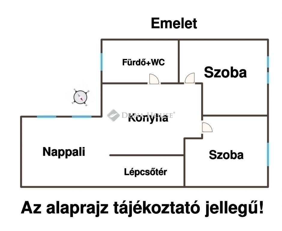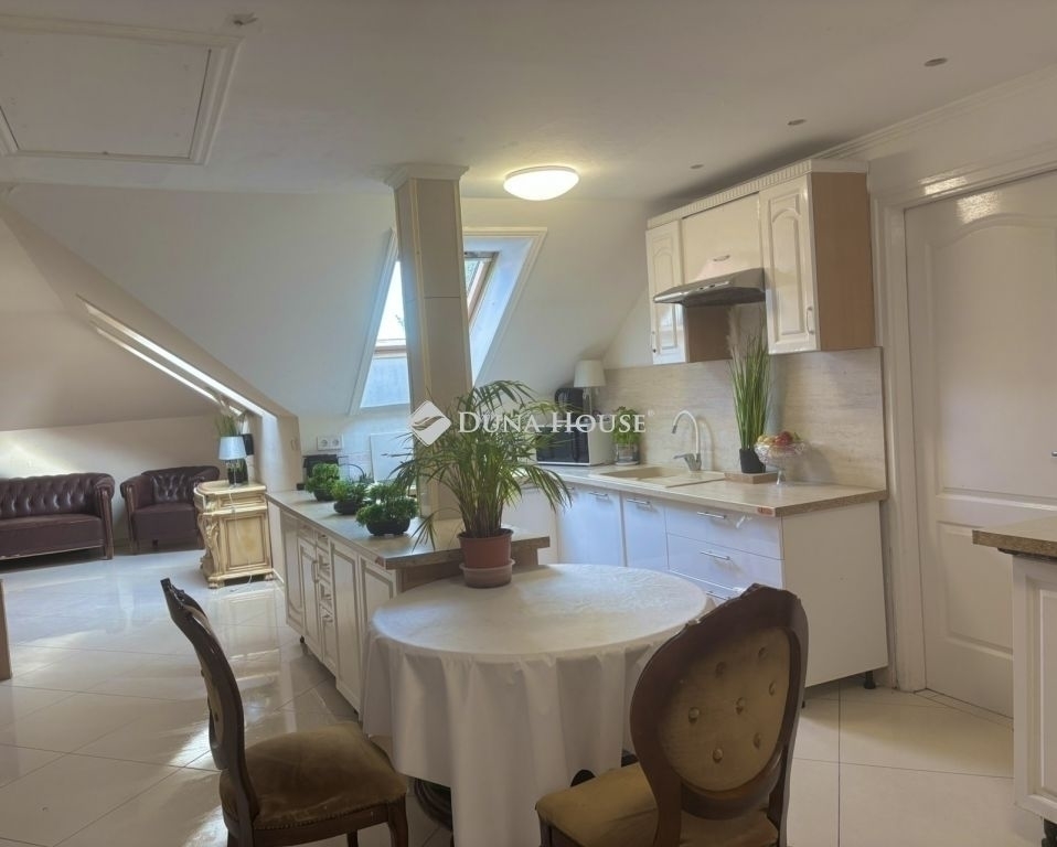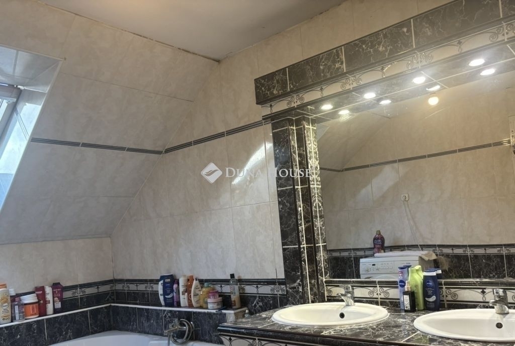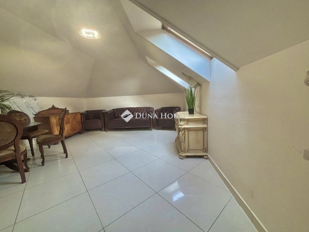 A ház belső kialakítása átgondolt és praktikus. A tágas nappali mellett négy külön nyíló szoba, két konyha és két fürdőszoba áll rendelkezésre, így az ingatlan könnyedén kétgenerációs otthonná alakítható. A lépcső alatt praktikus tároló kapott helyet, a padlás pedig további bővítési vagy pakolási lehetőséget kínál.