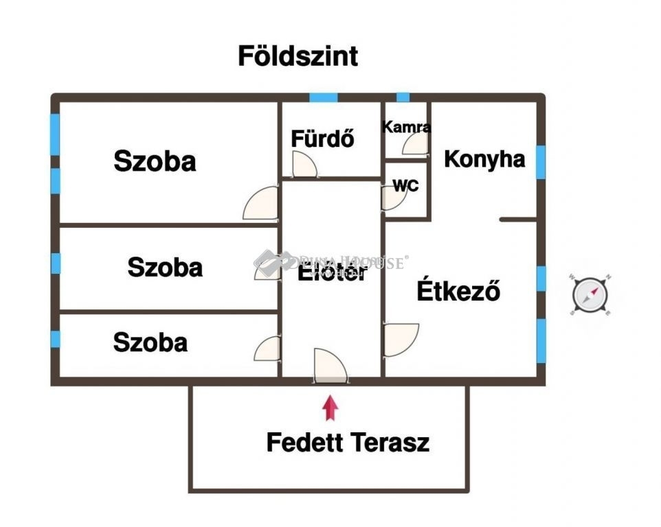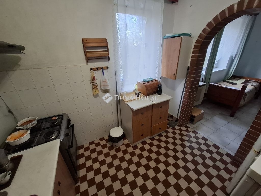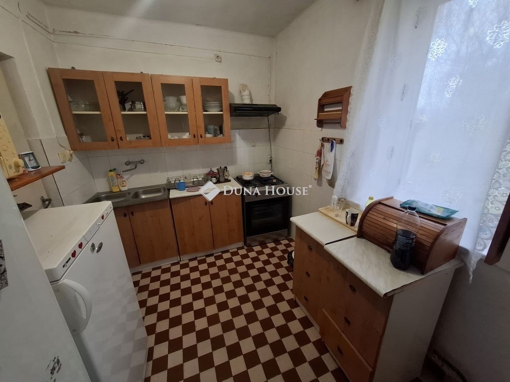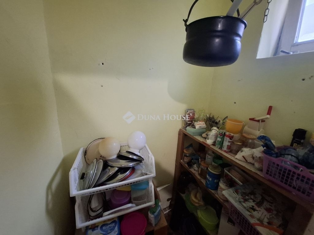 A földszinti lakórész alapterülete 75 m2. Mindhárom szoba az utcára nyílik, a két kisebb szobában új műanyag nyílászárók vannak, míg a több helyiségben fa nyílászárók hőszigetelt üveggel. Az épület előtt 13,5 m2-es hangulatos fedett terasz van, ahonnét a pincébe is le tudunk jutni. A ház nagyobb család számára is alkalmas, a belső falak alakíthatóak, a fűtést jelenleg konvektorok biztosítják. A villanyvezetékek korszerűek, a vízvezetékek a pincében futnak, a tetőtérben pedig födémszigetelés van. Ha felkeltette érdeklődését, telefonáljon és kérjen időpontot.