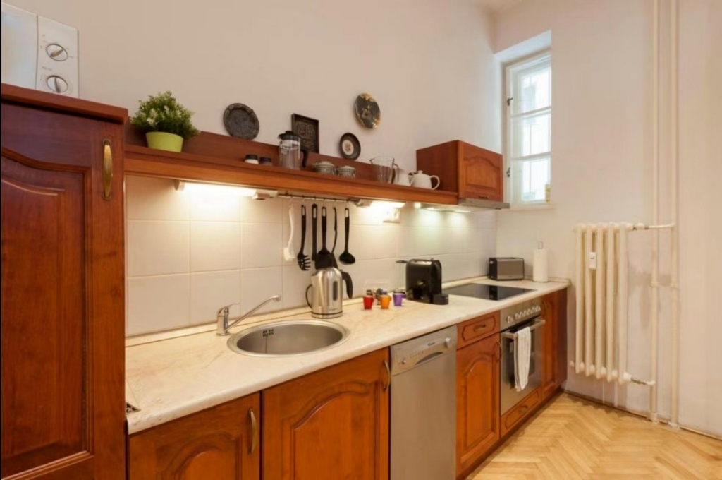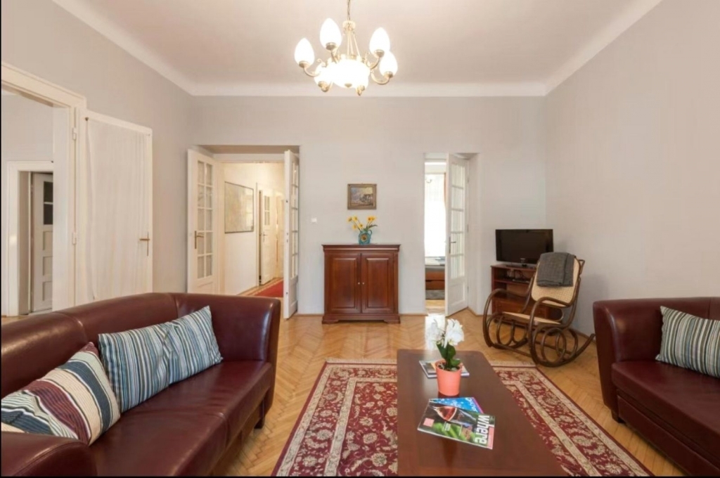VI. kerületben, a Jókai téren eladó egy 86 m2-es, nappali plusz 2 hálószobás, 1. emeleti lakás. A közös költség 26.000 Ft, mely a hideg víz-fogyasztást magában foglalja, a fűtést házközponti fűtés biztosítja. Az ingatlan gépesített, a képen látható bútorokkal kiadó. Minimum bérlési időszak 1 év. Az ingatlan kisállattal nem költözhető. Két havi kaucióval, egy havi közös költséggel azonnal költözhető.
