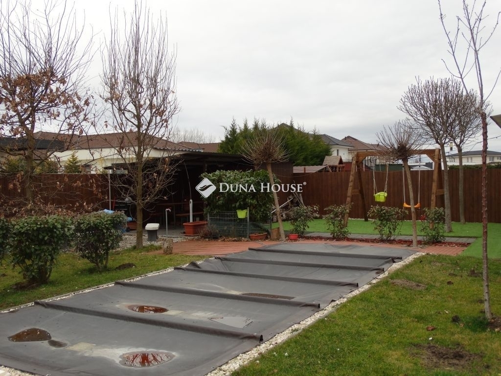 A 635 m²-es, parkosított telek automata öntözőrendszerrel, csepegtetővel és esővíz-szikkasztóval ellátott. A kertben kültéri medence, fedett bográcsozó- és szalonnasütő hely, játszótér, valamint egy 10 m²-es, betonalapra épített kisház található. A hátsó kertre néző, 20 m²-es fedett terasz ideális helyszín családi és baráti összejövetelekhez.