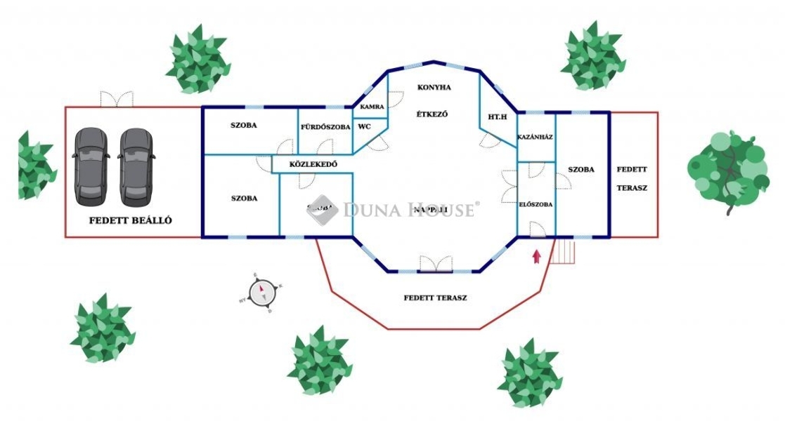 - egy 17 m2 és egy 12 m2-es fedett teraszból áll.