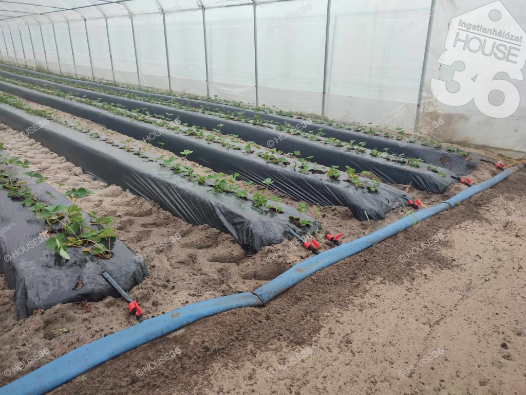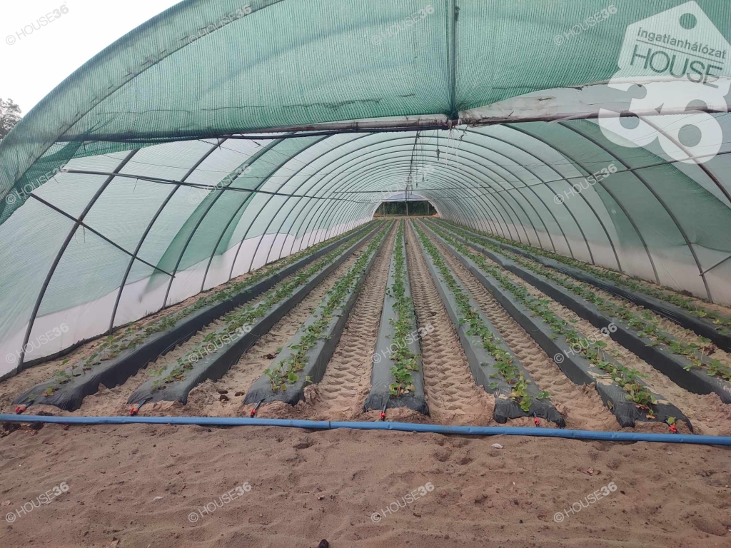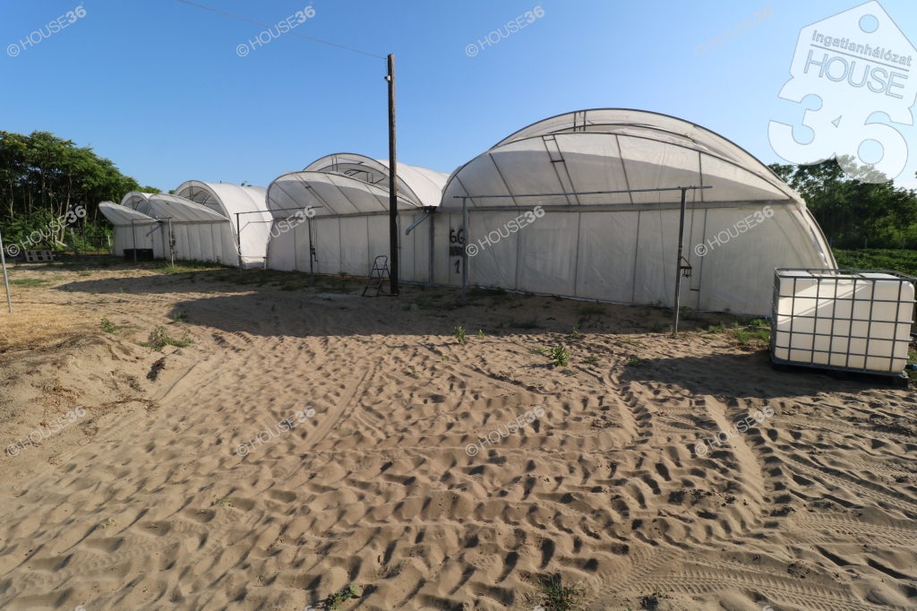 Kecskemét közelében Ágasegyházán, közel 1.5 ha-os, több helyrajzi számon lévő, 12 db nagyméretű fóliasátorból és gazdasági épületből álló mezőgazdasági ingatlan ELADÓ! A terület körbekerített, ipari árammal ellátott, riasztó és kamerarendszerrel felszerelt. A fóliasátorok öntözését 2 db fúrt kútról működtetett, automata öntözőrendszer biztosítja. A gazdasági épületben kialakításra került egy 1 szobás, fürdőszobás, elektromos fűtésű lakrész is. A fóliasátorok belső hasznosított összterülete: 5.360 m2. A vételár tartalmazza a teljes berendezést: riasztó és kamerarendszert, szivattyúkat, automata öntözőrendszert, tartályokat, mobil garázsokat (tárolók), ládákat és 2083 m2 telepített akácerdőt is. Rendezett jogi hátterű, tehermentes ingatlan. Elsősorban zöldség-gyümölcs, vagy virágtermesztőknek ajánlom, akik a szakértelmüknek köszönhetően egy igazán jövedelmező vállalkozást üzemeltetnének. (Lakás beszámítási lehetőség!)