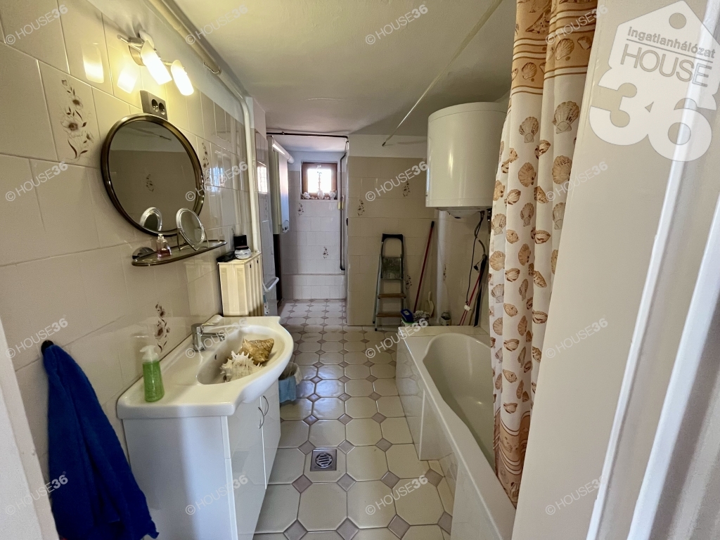 Az alsó szinten 2 szoba, előszoba-nappali, konyha-étkező, kamra, fürdőszoba, WC és egy beépített veranda található 105 m2-en. Az otthon melegéről külön gázkazán gondoskodik. Az új ablakokon szúnyogháló és redőny is található. A fürdőszoba és a wc 5 éve lett felújítva, ekkor a villanyvezetékeket is kicserélték.