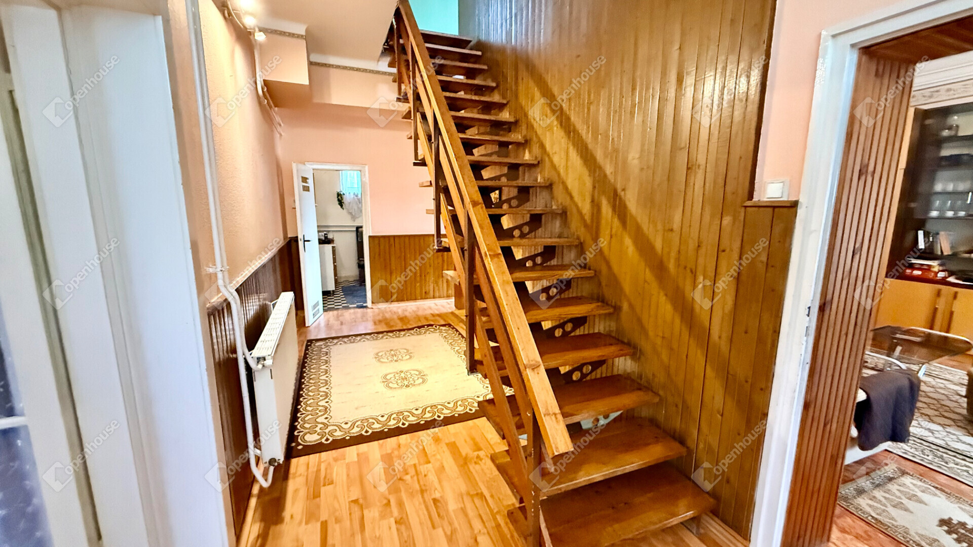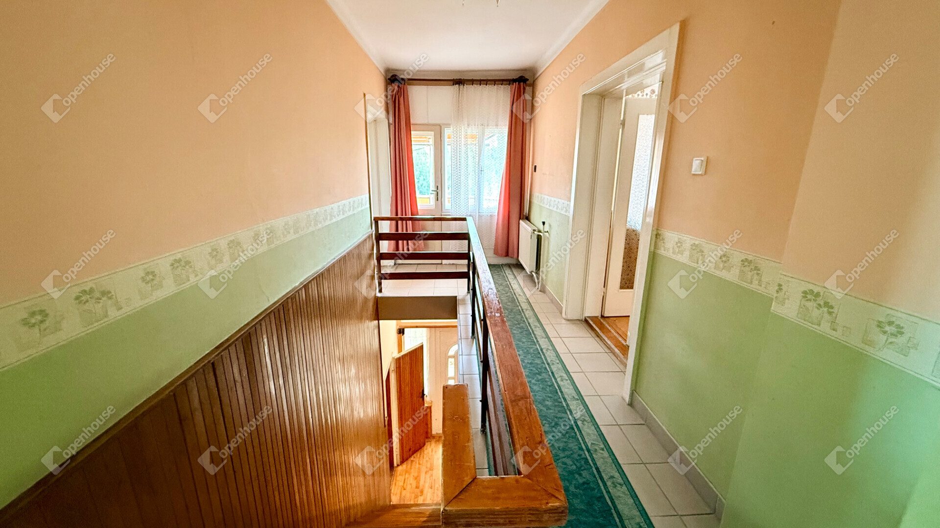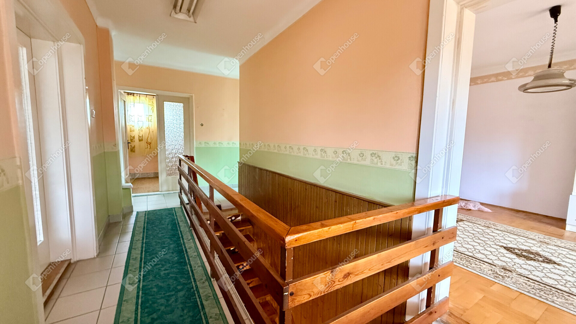 A ház 5 külön hálószobával (földszinten 3, emeleten 2) és egy tágas, 36 m²-es nappalival rendelkezik. Mindkét szinten fürdőszoba, a mellékhelyiség külön található. A fűtés radiátoros gázkazánnal, a melegvíz villanybojlerrel megoldott.