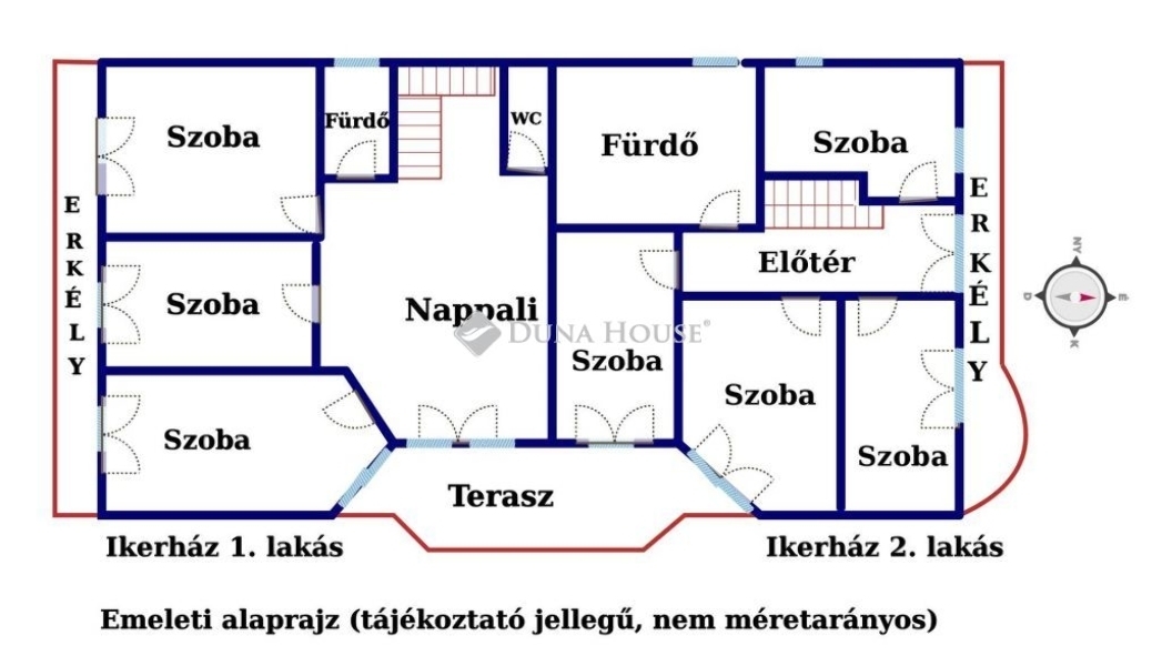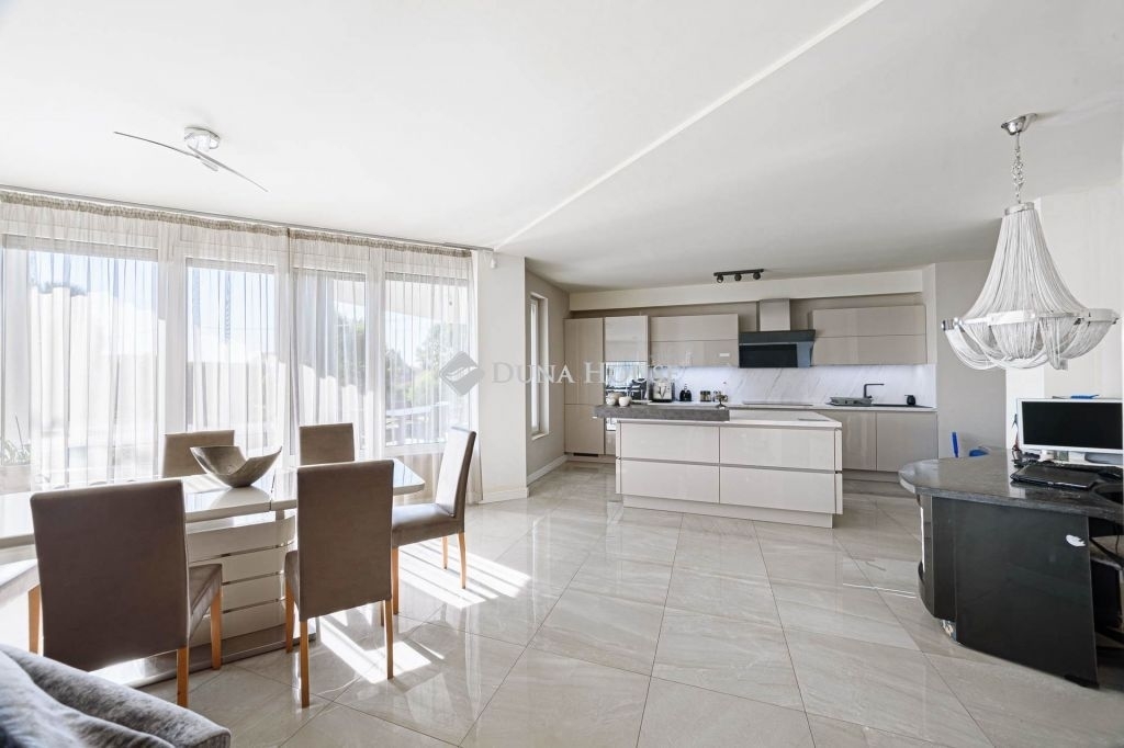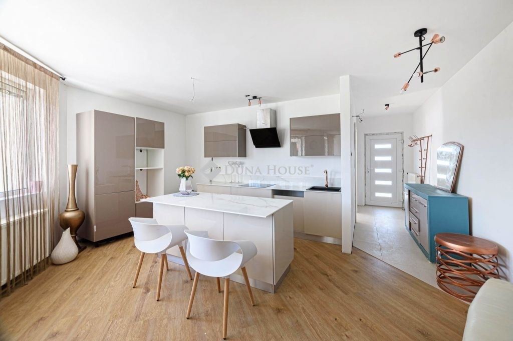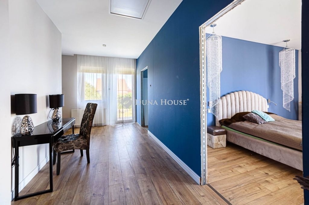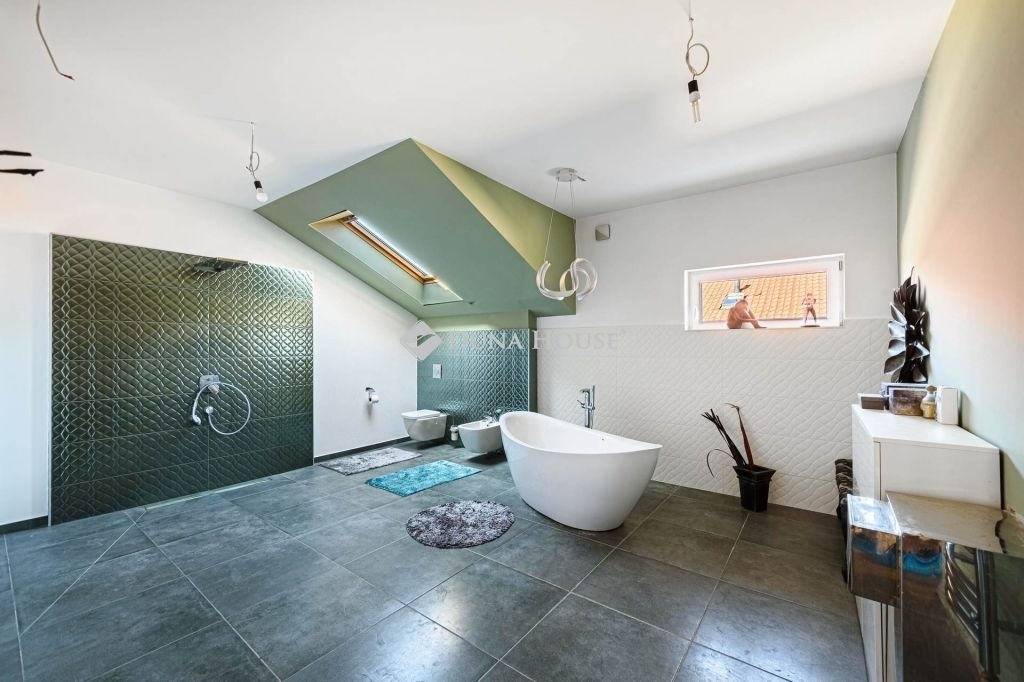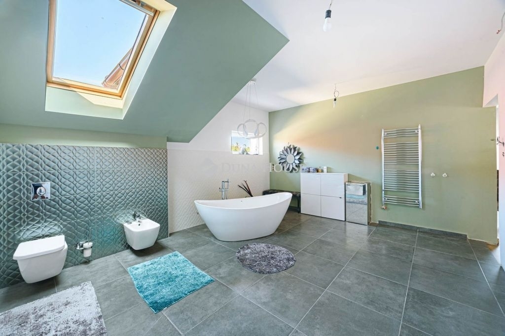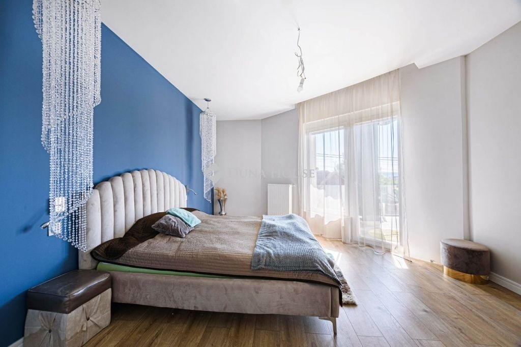 Mindkét lakásban a földszinten egy étkezőrészt is magába foglaló amerikai konyhás hatalmas nappali van EXKLUZÍV KONYHABÚTORRAL, valamint egy MODERN előtér, egy ELEGÁNS FÜRDŐ külön wc, pakoló és szerviz helyiségek. Az emeleten mindkét lakásban 4-4 szobát, 1-2 fürdőt és rengeteg teraszt találunk. A fenti egybefüggő TERASZOKRÓL GYÖNYÖRŰ A PANORÁMA. Az egész házat lakberendező tervezte. Egyedi bútorok, és megoldások teszik álomotthonná. LUXUS kivitelű, modern, kiváló minőségű anyagok használatával. Egyedileg gyártott, magas minőségű nyílászárók a nappaliban, motoros távműködtetésű redőnyös, ablakok. A nyílászárók és a bejárati ajtók műanyag kivitelezésűek.