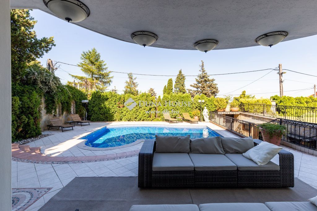 Luxus ingatlan Kiadó a Táborhegyen!III. KERÜLET TÁBORHEGYEN Kiadó EGY ÖRÖKPANORÁMÁS PRÉMIUM KATEGÓRIÁS, LUXUS CSALÁDI VILLA, teljes berendezéssel!IGAZI RITKASÁG A PIACON DUPLA TELEKKEL, MEDENCÉVEL, BOROSPINCÉVEL (70m2), GRILL TERASSZAL ÉS KÜLÖN VENDÉG HÁZZAL (60 m2).AMI IGAZÁN KÜLÖNLEGES, HOGY AZ UTCAFRONTRÓL SZINTE SEMMILYEN BELÁTÁS NINCS.A földszinten (150 m2) helyezkedik el a tágas előtér, nappali-konyha-étkező Innen jutunk a 50 nm-es, déli tájolású teraszra, illetve innen közvetlen a kertkapcsolat a fűtött medencéhez. Ugyanitt található még egy 63m2-es két állásos fűtött garázs illetve további 4 gépkocsi részére felszíni beálló.- Emeleten (150 m2 )található 3 hálószoba, 2 fürdőszoba, valamint egy hatalmas gardrób és dolgozó szoba .-1 szinten 100m2-es edzőterem, szauna illetve egy tároló került kialakításra.További kérdések esetén, keressen bizalommal.. Hibás hirdetés bejelentése
