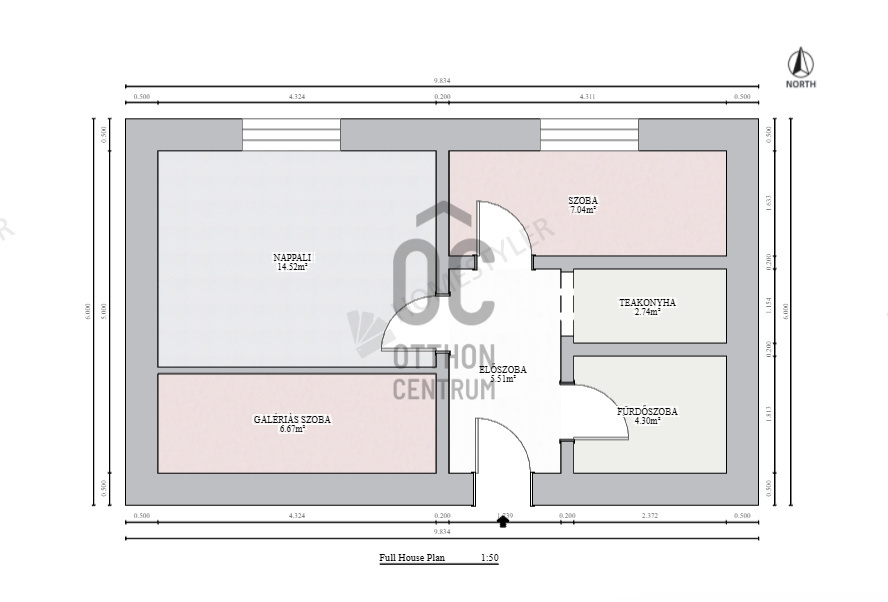 A lakás 41 m² alapterületén egy előszoba, szoba, galériás nappali, kisebb teakonyha és egy fürdőszoba+WC helyiség található.
