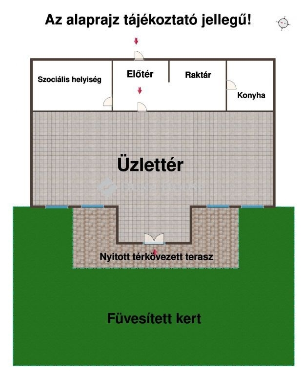 Az ingatlan fő helyisége 70 m2, hozzá tatozó szociális helyiség 10 m2, konyha rész 10 m2, raktár rész 10 m2 és egy alagsori raktár helyiség 20 m2.