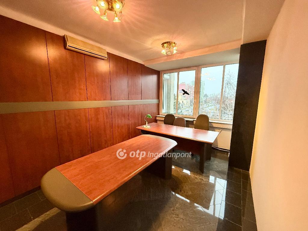 A Mártírok terén, Nyíregyháza belvárosában kiadó egy tágas, 145 nm-es, igényesen kialakított irodahelyiség. Az ingatlan egy modern, nyolcemeletes, liftes irodaház 3. emeletén található, ahol két lift biztosítja a kényelmes megközelítést. Az iroda teljesen berendezett, beépített szekrényekkel, valamint saját, felszerelt konyha-étkezővel, továbbá külön mellékhelyiséggel rendelkezik. Négy klíma gondoskodik a megfelelő hőmérsékletről minden helyiségben. Világos tereinek köszönhetően városi panorámát kínál, amely inspiráló munkakörnyezetet teremt. Az épületben éjjel-nappali beléptető-rendszer működik, a folyosók kamerával megfigyeltek, így a biztonság maximálisan garantált. Az iroda kiváló választás cégeknek, akik frekventált, könnyen megközelíthető helyen szeretnék kialakítani új székhelyüket vagy munkaterüket.
