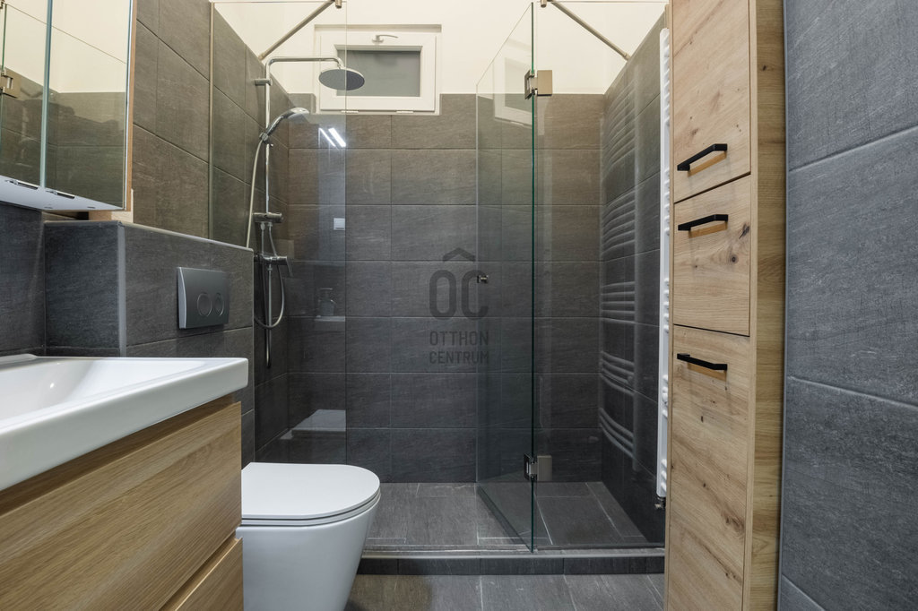 - A fürdőszobában és az előtérben padlófűtést alakítottak ki.