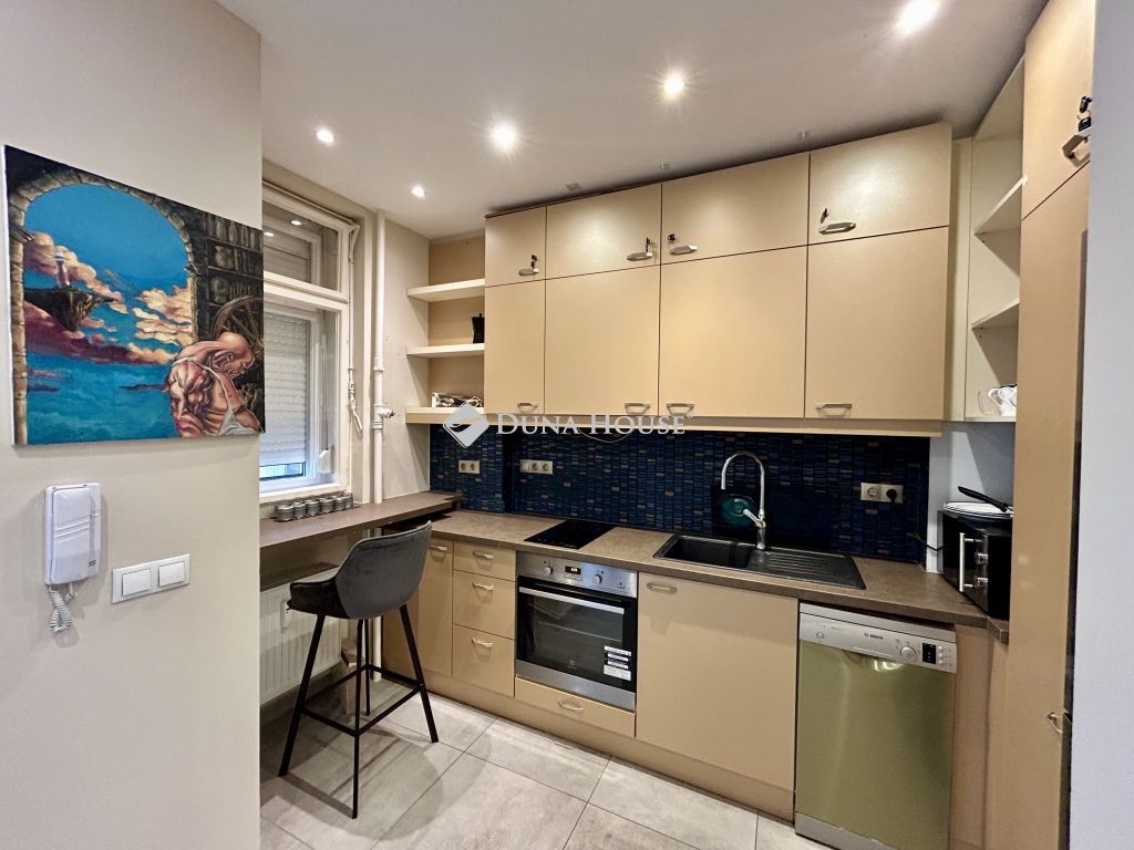 A konyha modern gépesítéssel felszerelt és praktikus elrendezésű, a fürdőszoba pedig ízlésesen kialakított, felújított állapotú.