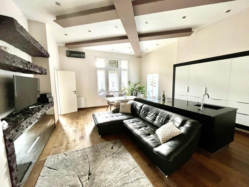 Kiadó minimum egy évre egy exkluzív, 101 m²-es, 4. emeleti luxuslakás egy gyönyörűen felújított, klasszikus liftes társasházban.