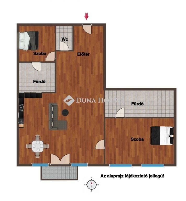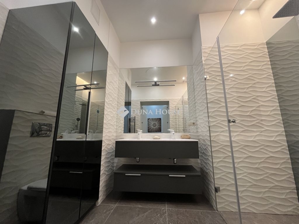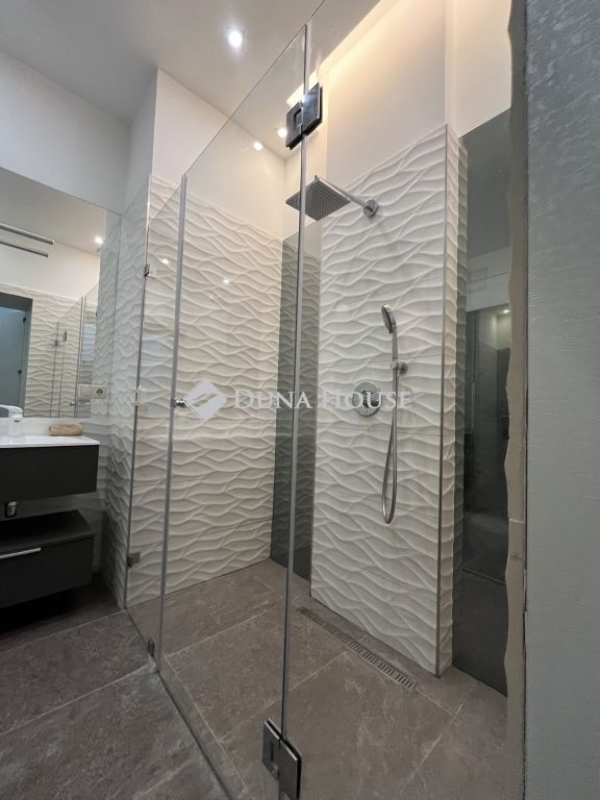 2 elegáns fürdőszoba (egyik kádas és zuhanyzós, másik zuhanyzós és WC-s) tágas előtér