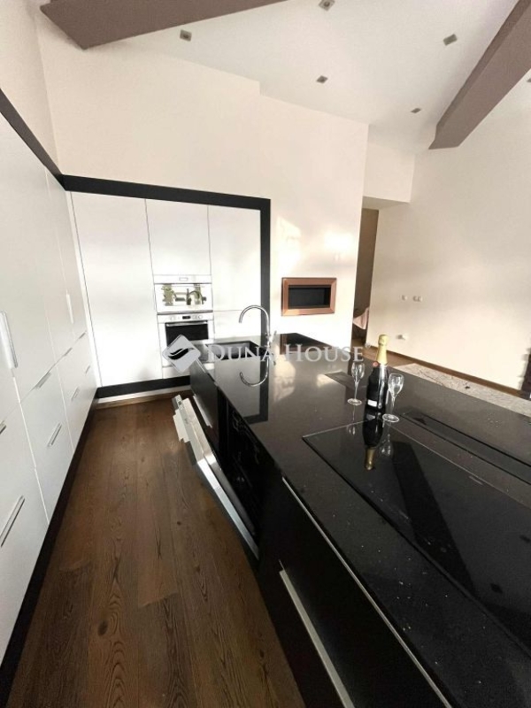 napfényes amerikai konyhás nappali étkezővel és a lenyűgöző dunai panorámás erkéllyel