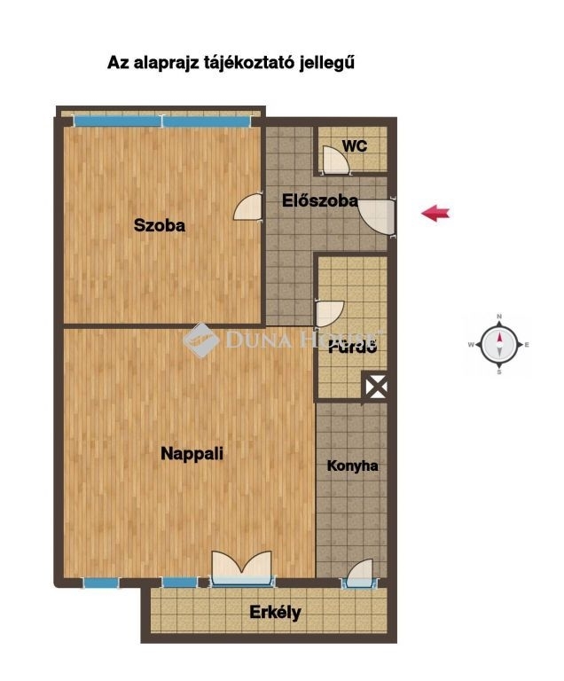 A lakás a társasház 5. emeletén található, napfényben úszó amerikai konyhás nappalival + külön nyíló nagyméretű hálószobával rendelkezik. A nappali déli, a háló keleti tájolású.