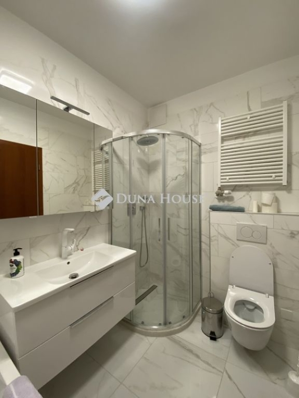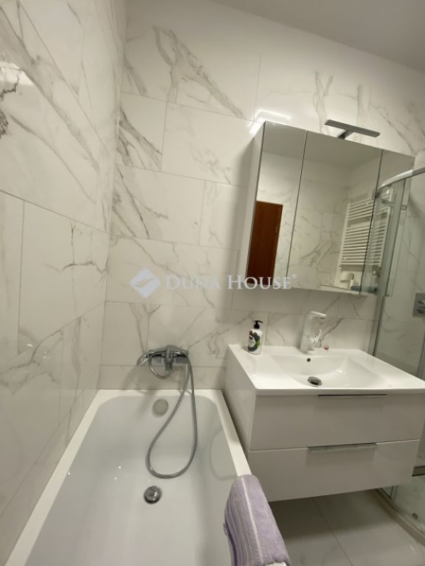 Fürdő: kád és zuhanyzó, Grohe és Hansgrohe csaptelepek, beépített falsíkos megoldások, masszázs- és esőztető funkciókkal